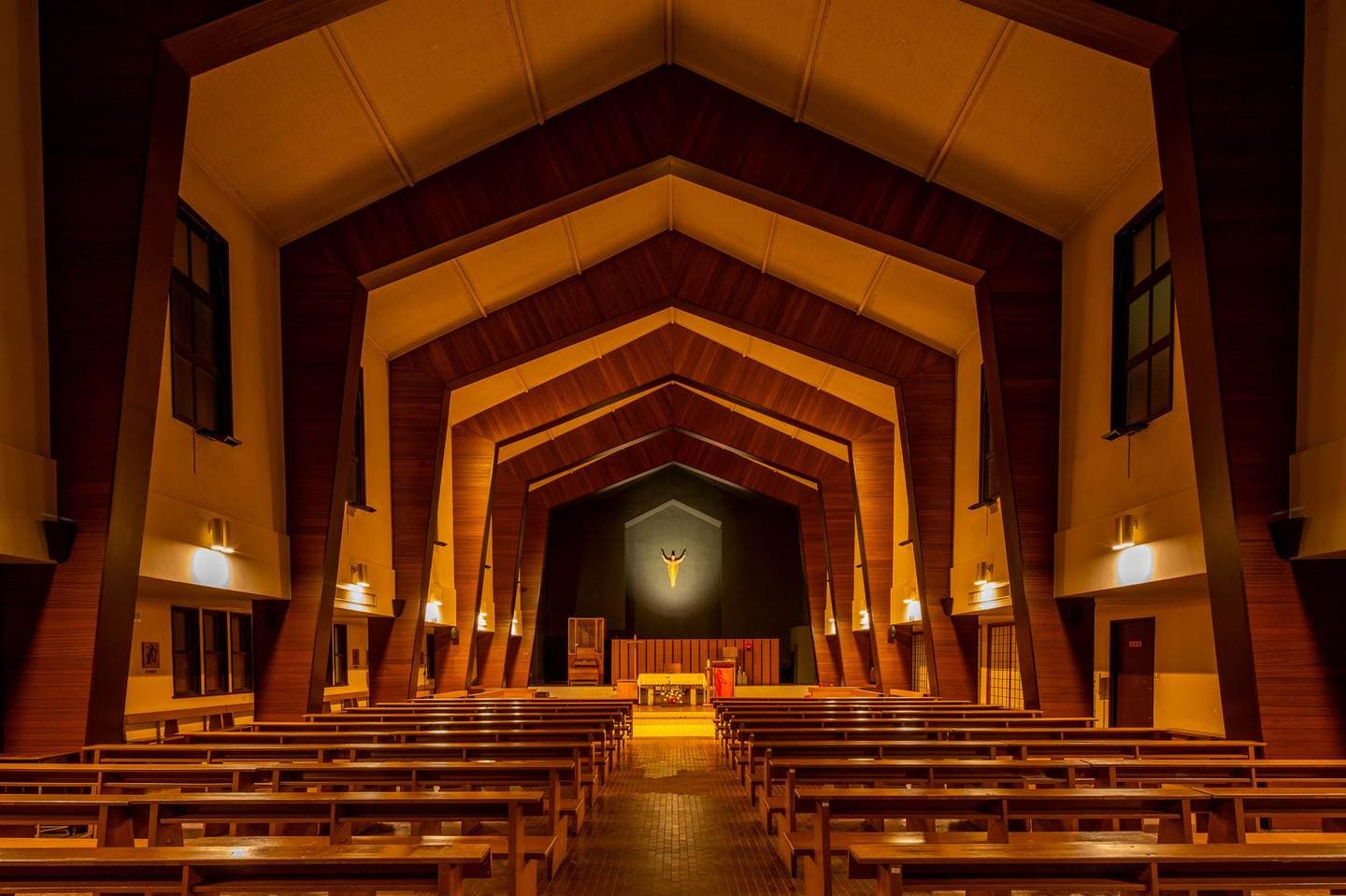 土曜(17時~)と日曜(9時~、10時半~、15時~(外国語)、17時~)の主日ミサはこの聖堂で行われますので、開始時間までに聖堂に直接お入りください。