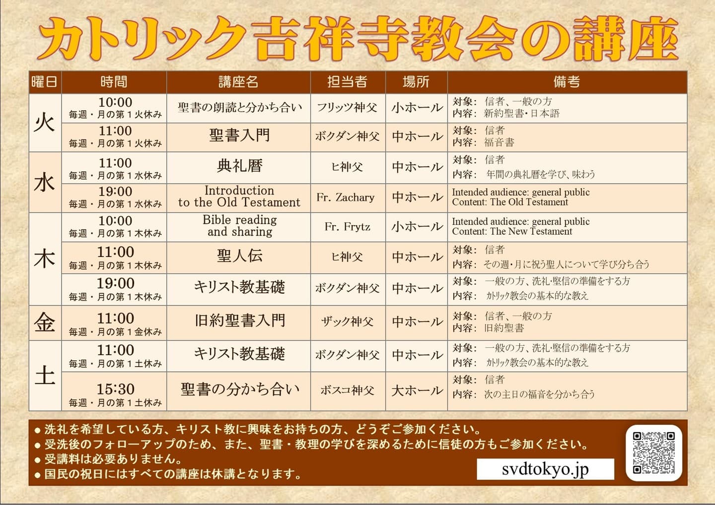 ※休館日および午後6時以降は信徒会館はご利用いただけません。ご協力ください。